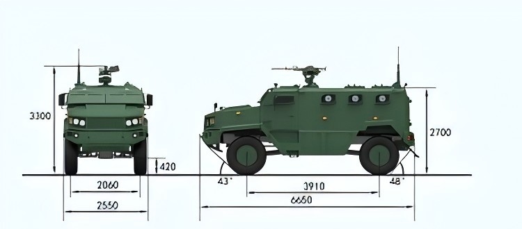 2. Comprehensive protection performance: whole vehicle possess ballistic protection capability, guarantee the safety of crew members; modular protection components can be attached, ballistic protection can be upgrade to NATO 2-3 level, mine protection/IED can be upgrade to NATO 2 level.
